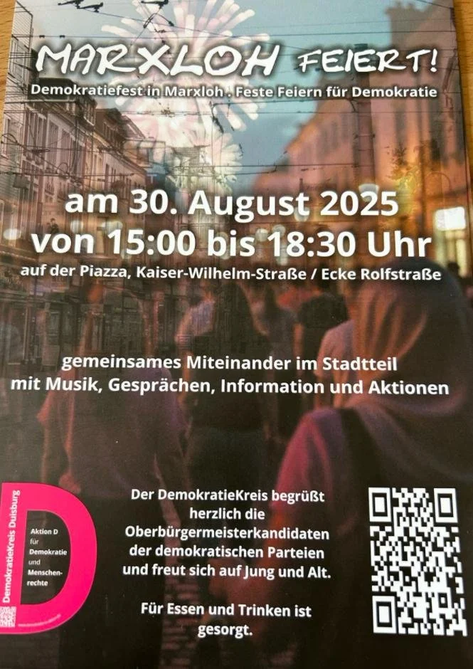 Eingeladen und organisiert hatte der Demokratiekreis Duisburg, in dem auch unsere neue DUaktiv-Mitgliedsgruppe Empathie e.V. mitwirkt. Mit dabei auch weitere Mitglieder von DUaktiv und Teilnehmer:innen der Zukunftswerkstatt Hochfeld.